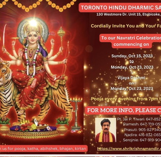Shraad Nautri begins on Sunday, October 15 th and conclude on Monday 23 rd culminating with Vijay Dashmi. Puja commences at 7pm each night All devotees are invited to attend