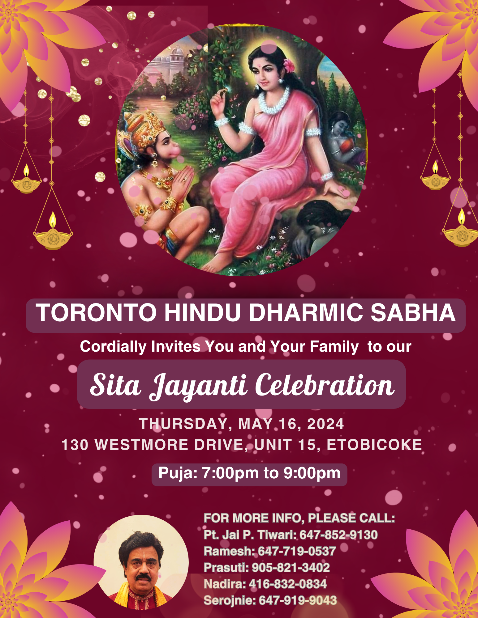Toronto Hindu Dharmic Sabha cordially invites you and your family to our Sita Jayanti Celebration on Thursday, May 16 2024. Puja from 7pm to 9pm.