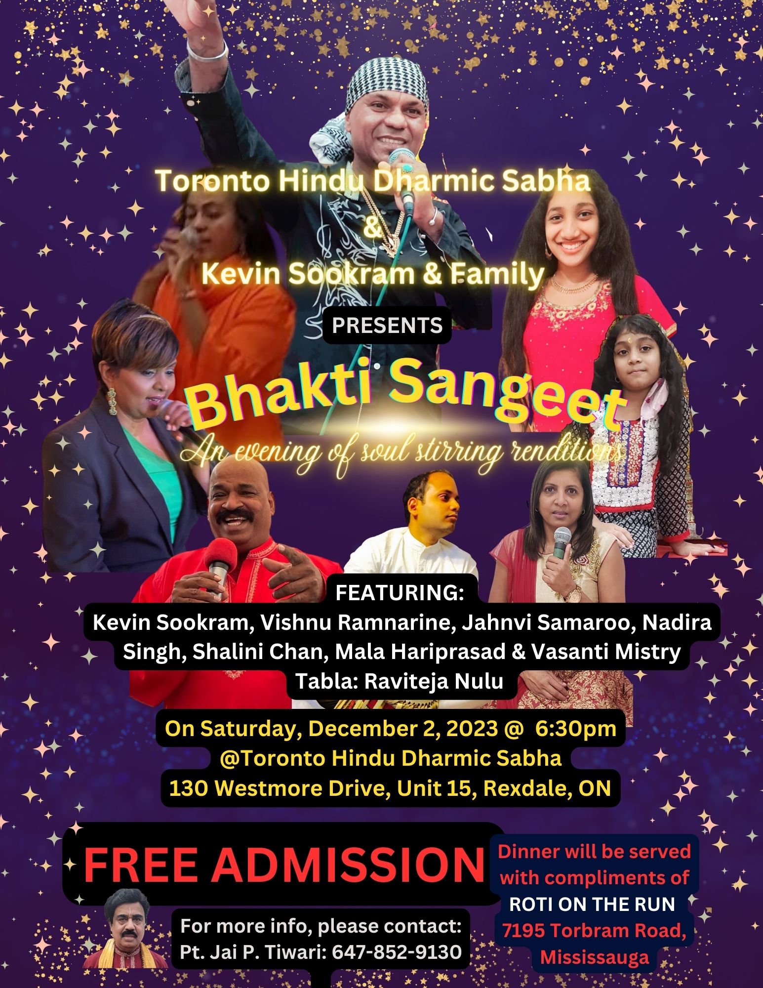 Toronto Hindu Dharmic Sabha and Kevin Sookram & family invites you to join us for an evening of soul stirring renditions on Saturday, December 2 @ 6:30pm. Free admission!