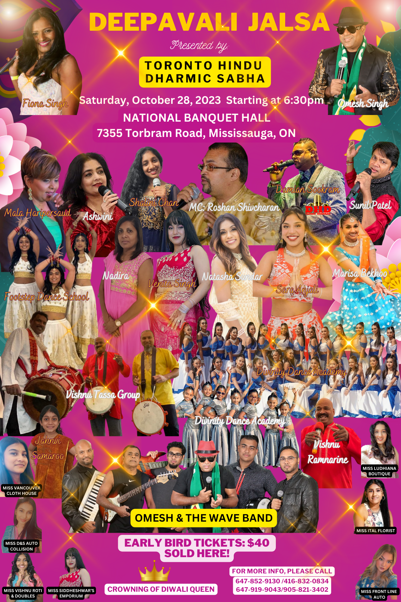 Join us for a night of entertainment and dinner! With special performances by Omesh & The Wave Band, Hurricane Hemlata, STCC Dance Academy, and Vishnu Tassa Group. Dinner will be provided by Pinecrest Event Venue in Woodbridge, ON. Tickets available by reaching 647-852-9130